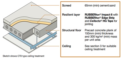 CONCRETE – PRECAST PLANK – Cellecta® RUBBERfon® Impact 6 system and floating screed