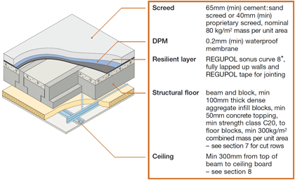 CONCRETE - BEAM AND BLOCK - concrete topping - REGUPOL sonus curve 8 resilient layer system and floating screed