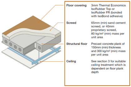 CONCRETE - PRECAST PLANK - direct-applied screed - Thermal Economics IsoRubber Top or IsoRubber FR bonded resilient floor covering