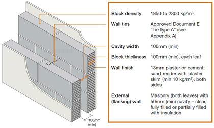 MASONRY - DENSE AGGREGATE BLOCKWORK - 100mm (min) cavity - (wet plaster)