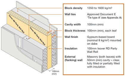 MASONRY - LIGHTWEIGHT AGGREGATE BLOCKWORK Saint-Gobain Isover RD Party Wall Roll - 100mm (min) cavity - (gypsum-based board)
