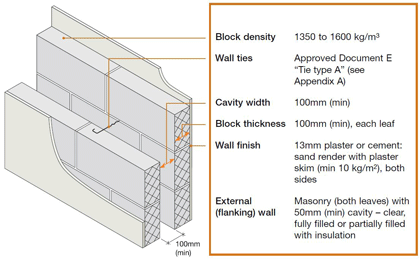 MASONRY - LIGHTWEIGHT AGGREGATE BLOCKWORK - 100mm (min) cavity - (wet plaster)