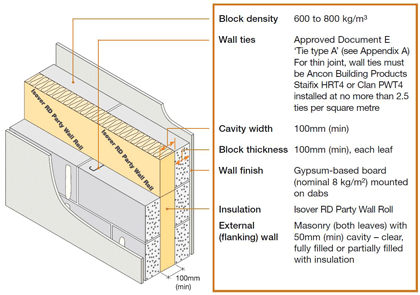 MASONRY - AIRCRETE BLOCKWORK - Saint Gobain-Isover RD Party Wall Roll - 100mm (min) cavity - (gypsum-based board)