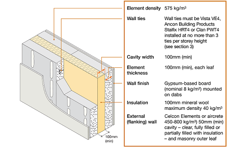 MASONRY – H+H – 'CELCON ELEMENTS' PANELS 100mm (min) insulated cavity – (gypsum based board)