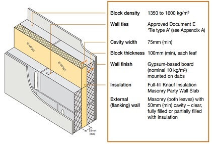 MASONRY LIGHTWEIGHT AGGREGATE WALL - Knauf Insulation Masonry Party Wall Slab - 75mm (min) cavity (gypsum-based board)