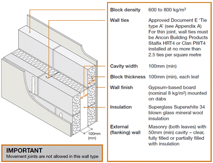 MASONRY - AIRCRETE BLOCKWORK - Superglass Superwhite 34 100mm (min cavity) - (gypsum-based board)
