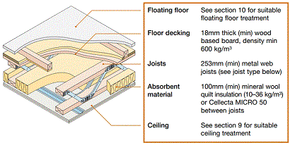 E-FT-3 TIMBER - METAL WEB JOISTS - timber floating floor Timber flange and metal web joists Use with timber frame walls only DETAIL INFORMATION Floor and Wall Combinations Checklist Visual indicators of critical features you must get right Additional Information Please refer to the Robust Details Handbook for full details of the required construction. SIGN IN / SIGN UP To download the online Handbook